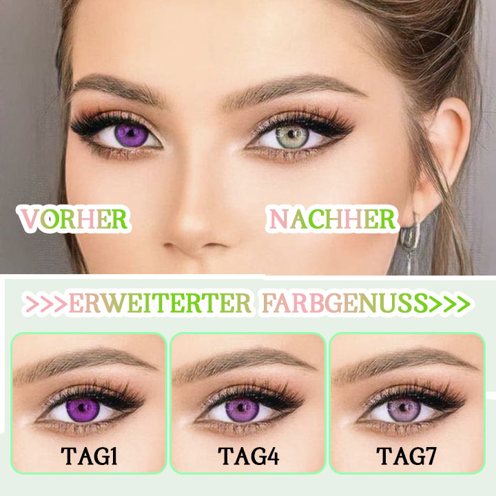 قل وداعًا للانزعاج الذي تسببه العدسات اللاصقة واستمتع بتجربة تأثيرات الألوان السحرية المتغيرة لـ Biancat™ HueShift! خلال ساعتين فقط، سوف تزدهر عيناك بلون جديد يدوم لمدة 5-7 أيام.